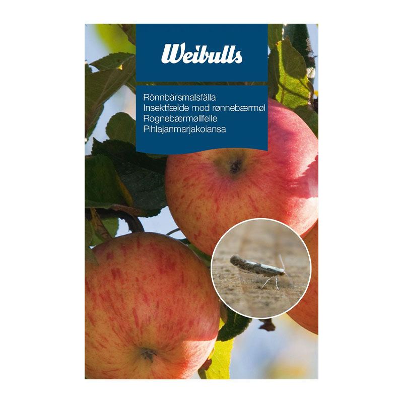 Die Weibulls-Falle für Ebereschenmotte wird zur Überwachung des Auftretens dieser Schädlinge im Garten eingesetzt, insbesondere beim Anbau von Apfelbäumen. Die Falle ist mit einem Pheromon versehen, das den Duft der Weibchen imitiert und während der Schwärmzeit männliche Falter anzieht. Ziel ist es, frühzeitig festzustellen, wann Ebereschenmotte im Gebiet aktiv ist, um gegebenenfalls weitere Maßnahmen planen zu können.