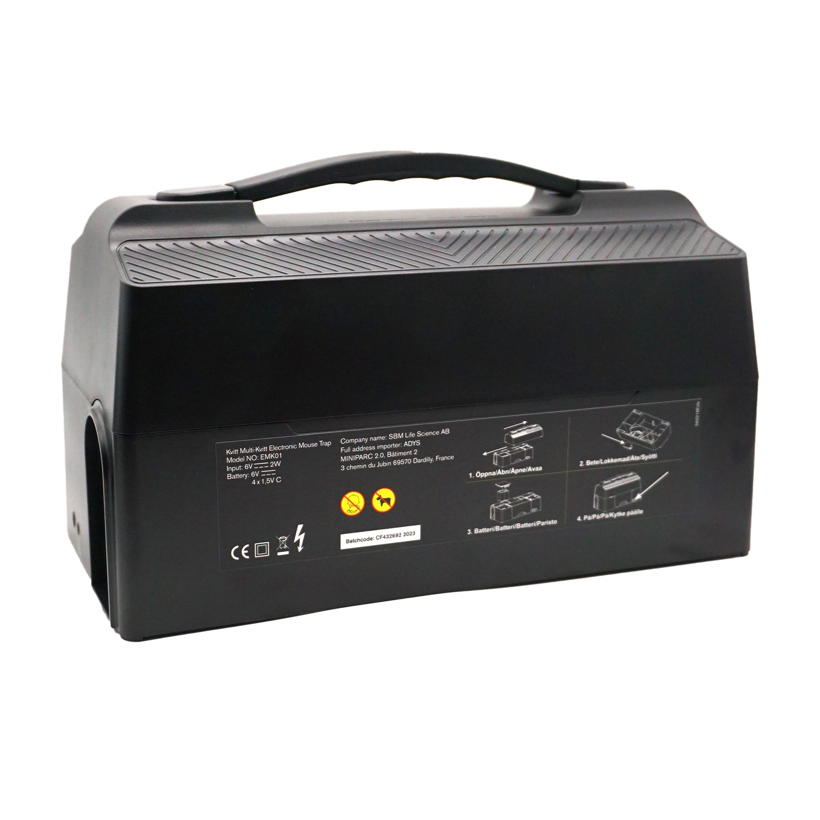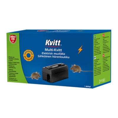 Die Kvitt Multi-Kvitt elektrische Mausefalle wurde für Anwender entwickelt, die Mäuseprobleme in Innenbereichen wie Lager, Geschäften, Büros, Ställen oder Wohnräumen effizient kontrollieren müssen. Die Falle tötet Mäuse schnell durch einen starken elektrischen Schlag in einer geschlossenen Kammer, was eine diskrete und hygienische Handhabung ohne direkten Kontakt ermöglicht. Dank der Mehrfachfangfunktion können bis zu 10 Mäuse im Behälter gesammelt werden, bevor eine Entleerung notwendig ist, und je nach Nutzung können bis zu ca. 150 Mäuse pro Batteriesatz getötet werden. Die Multi-Kvitt kann entweder mit dem mitgelieferten Netzadapter oder mit 4 C-Batterien – Hinweis: nicht enthalten betrieben werden, was eine flexible Platzierung ermöglicht. Die geschlossene Konstruktion reduziert das Risiko, dass Kinder oder Haustiere die aktiven Teile erreichen, während eingebaute Sensoren sicherstellen, dass die Falle nur aktiviert wird, wenn die Maus richtig positioniert ist. Das Produkt ist für trockene Innenräume vorgesehen und darf nicht in feuchten, kalten oder Außenbereichen verwendet werden.