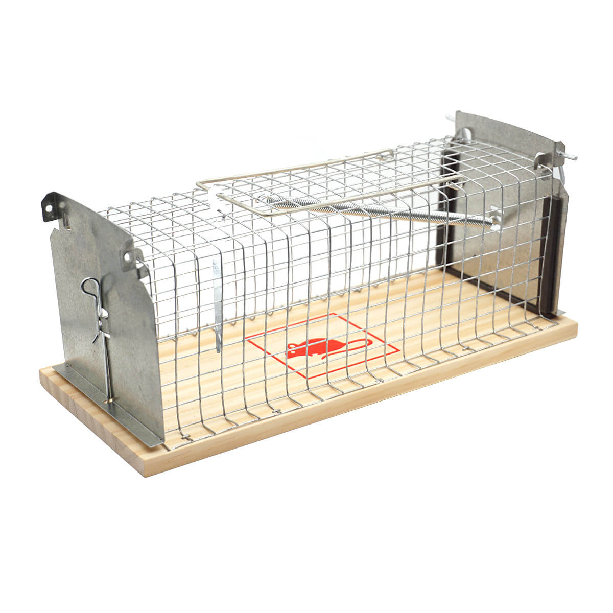 Dieser Metallkäfig ist ein praktisches Hilfsmittel, um Ratten sicher zu fangen, ohne ihnen Schaden zuzufügen. Er eignet sich besonders, wenn man ein Rattenproblem auf kontrollierte und humane Weise behandeln möchte. Dank seiner robusten Metallkonstruktion ist er langlebig und kann sowohl drinnen als auch draußen über längere Zeit verwendet werden. Der Käfig verfügt über einen Mechanismus, der aktiviert wird, wenn die Ratte das Köderfutter betritt. Die Tür schließt sich automatisch hinter der Ratte und hält sie sicher fest, bis der Käfig kontrolliert wird. Da die Ratte nicht getötet wird, kann sie an einem geeigneten Ort wieder freigelassen werden, wo sie keinen Schaden anrichtet.