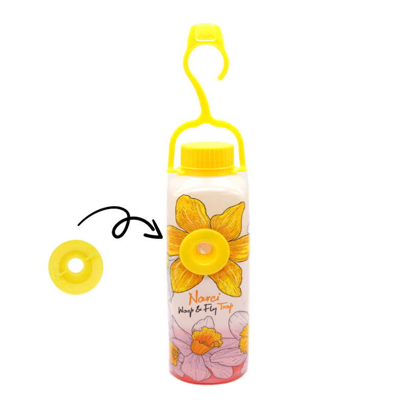 Die Falle wird mit 150 ml gebrauchsfertigem Lockmittel geliefert. Sobald die Flüssigkeit eingefüllt ist, werden die Insekten in den Behälter gelockt und dort gefangen. Der Behälter kann bei Bedarf leicht gereinigt und wieder befüllt werden.