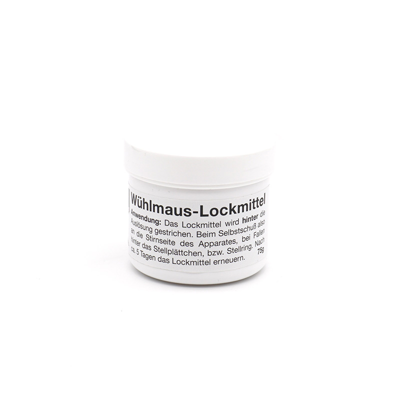 Dieser Lockstoff wurde speziell entwickelt, um das Vorkommen von Wühlmäusen und Maulwürfen anzuzeigen, indem er sie zu den Fallen anzieht. Er kann zusammen mit verschiedenen Arten mechanischer Fallen verwendet werden, wie Schuss-, Schlag- oder Lebendfallen. Der Lockstoff ist pflanzlich basiert und enthält keine Chemikalien. Er ist zur Anwendung im Garten, in Parkanlagen und auf Anbauflächen vorgesehen, wo die Überwachung bodenlebender Nagetiere erforderlich ist.