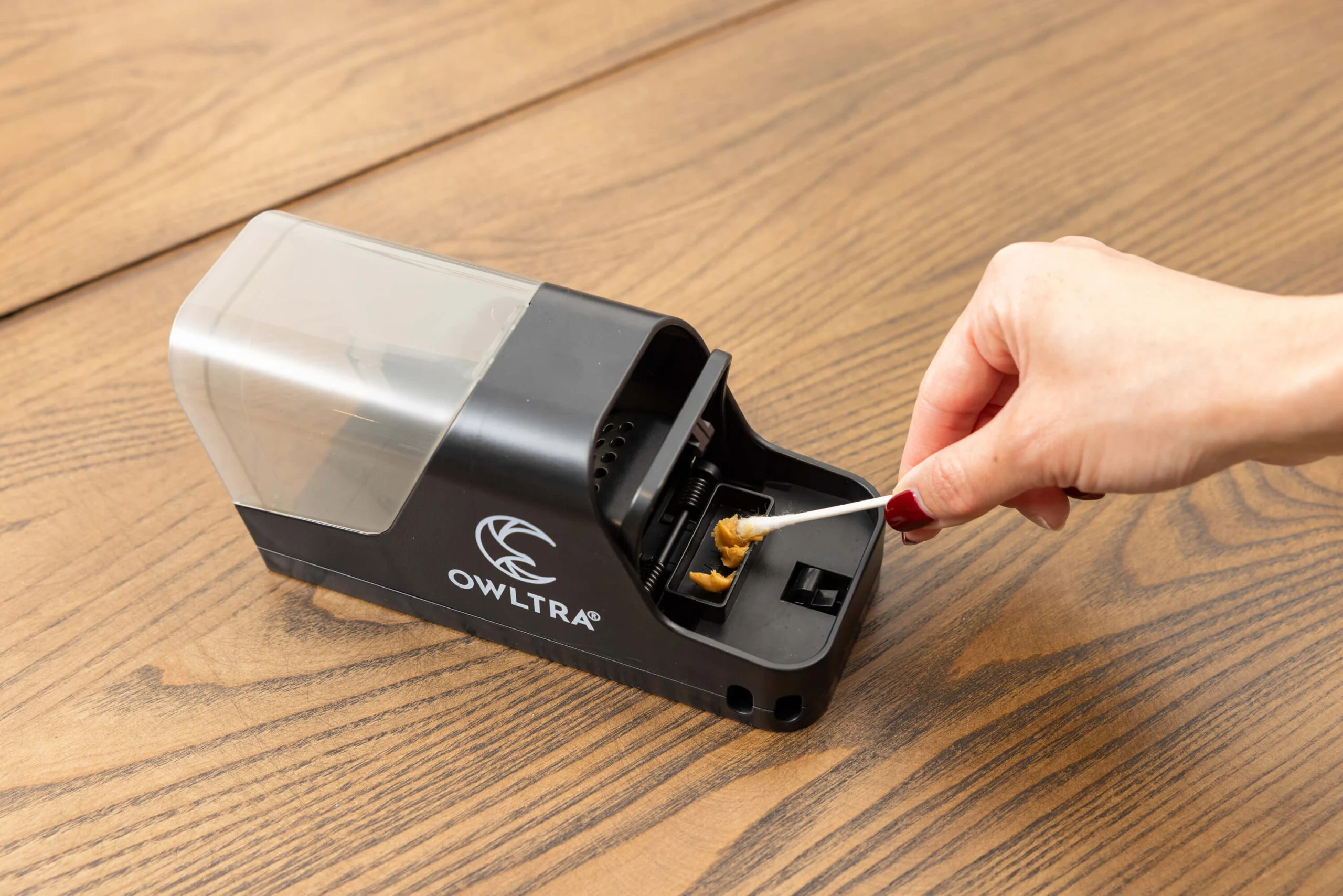 - Durch die Öffnung an der Oberseite beködern – verwenden Sie eine kleine Menge, die die Ratten dazu anlockt, ganz in die Falle hineinzugehen.