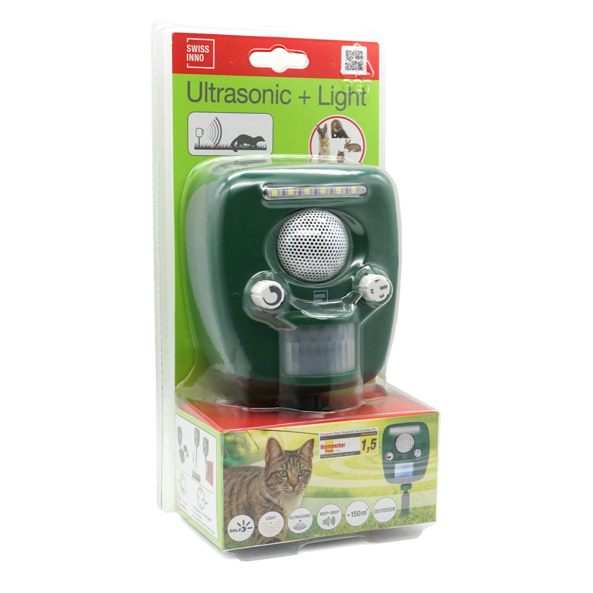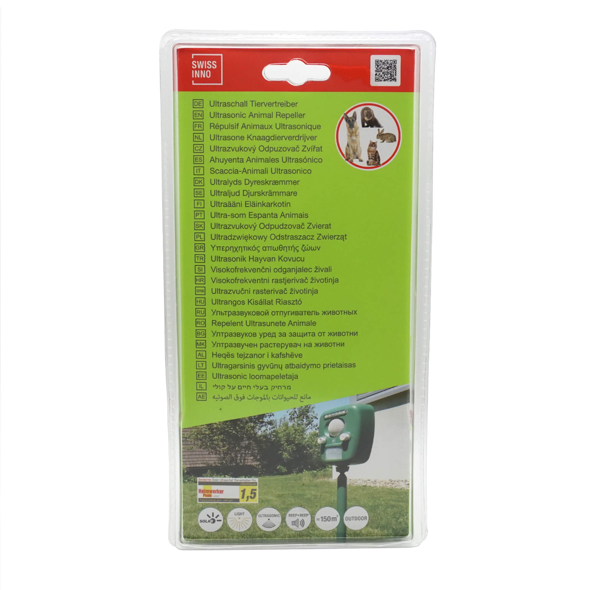 Dieser Tiervertreiber nutzt hochfrequente Ultraschallsignale, um Tiere wie Katzen, Hunde, Kaninchen und Nagetiere wirksam von Bereichen wie Gärten, Mülltonnen, Carports und Terrassen fernzuhalten. Wird eine Bewegung durch den Sensor erkannt, aktiviert sich das Ultraschallgeräusch und optional blinkende LED-Leuchten zur Verstärkung der Wirkung.