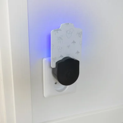 Stecken Sie die Falle in eine Steckdose dort, wo sich Insekten häufig aufhalten – z. B. in der Nähe von Obst, Abfallbehältern oder Fenstern. - Falle arbeiten lassen