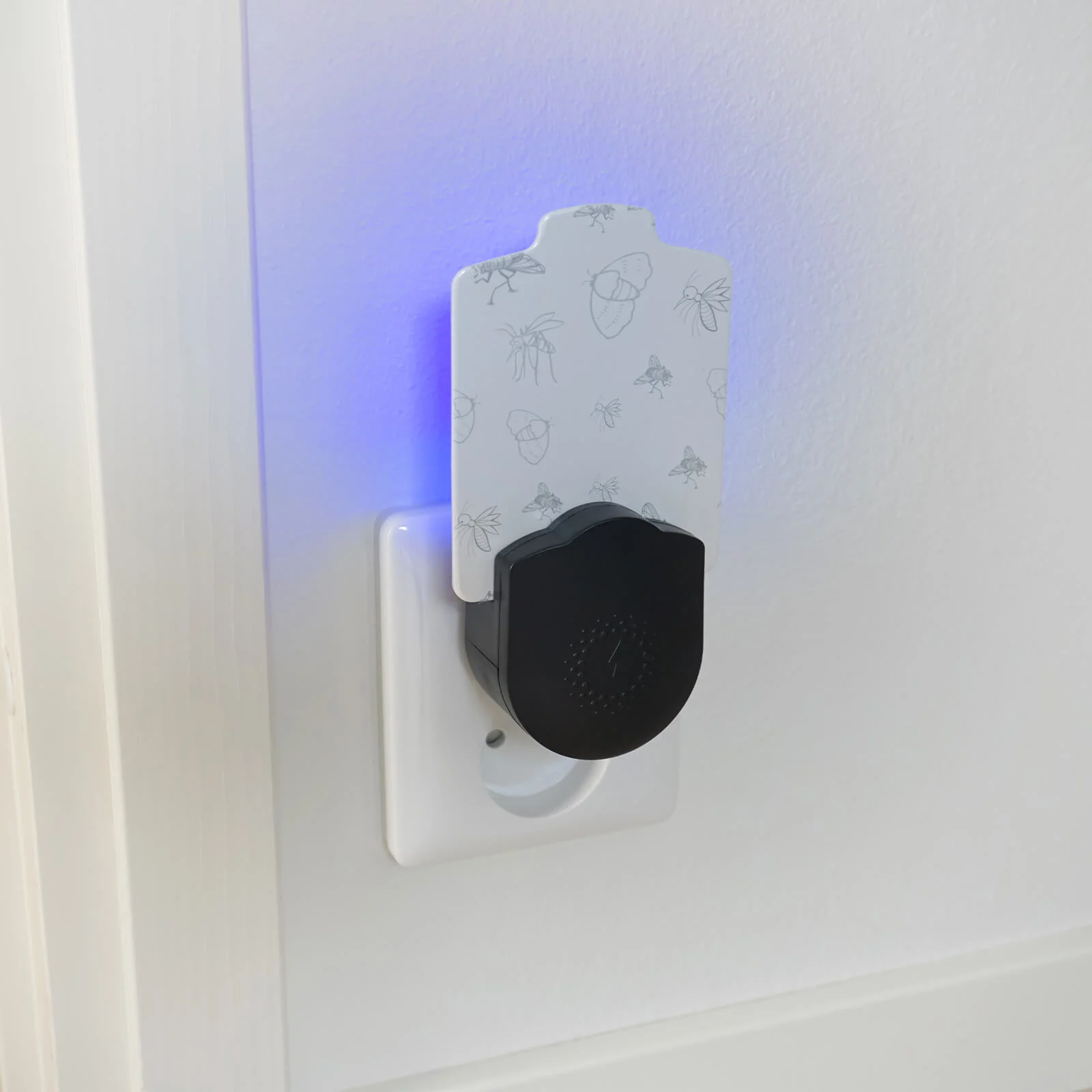 Sobald die Falle eingesteckt ist, beginnt das UV-Licht automatisch, Insekten anzulocken. - Klebefläche kontrollieren