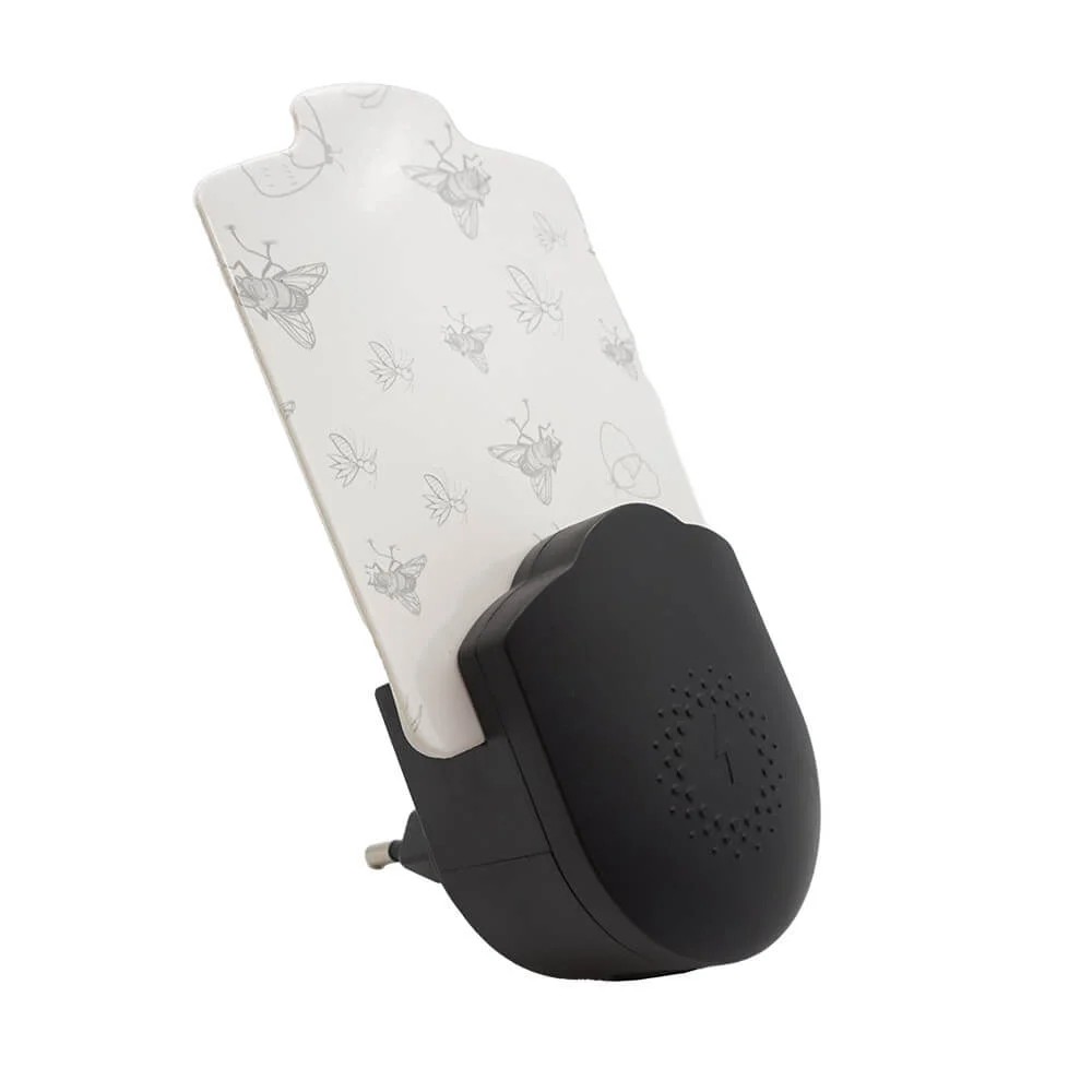 - Klebefläche statt elektrischem Gitter – keine Knackgeräusche und keine sichtbaren Insekten außen.