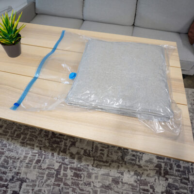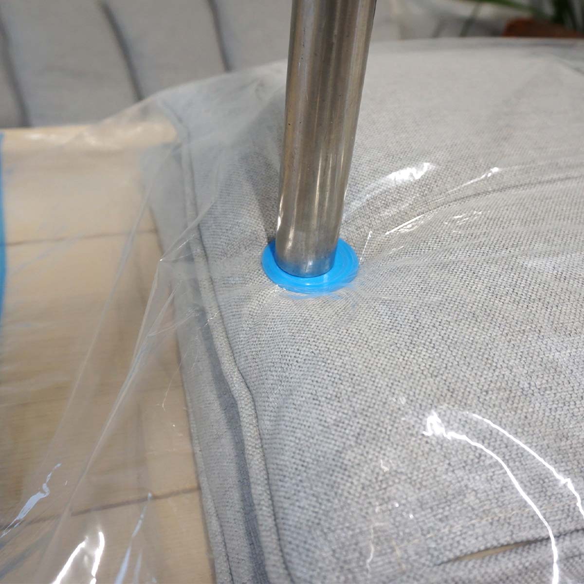 - Setzen Sie den Staubsauger an das Ventil und saugen Sie die Luft ab, bis der Beutel vollständig komprimiert ist.