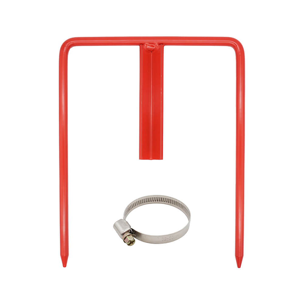 - Befestigen Sie die Kieferle W2-Falle mit der mitgelieferten Schlauchschelle in der Mitte des Erdspießes