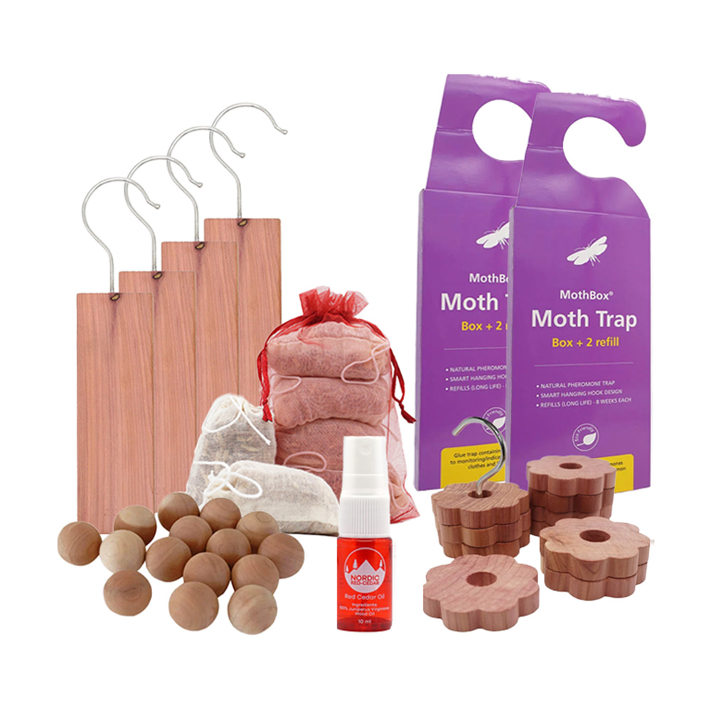 Vorteilspaket Zedernholz enthält Mottenfallen und mehrere Produkte aus Zedernholz. Eine effektive Möglichkeit, Motten zu bekämpfen und anschließend einen Schutz zu schaffen, damit die Insekten nicht zurückkehren.
