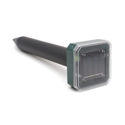 Solarbetriebener Vertreiber, der Wühlmäuse und Maulwürfe effektiv stört und aus dem Bereich vertreibt, in dem er platziert wird. Durch das Aussenden regelmäßiger Vibrationen und niederfrequenter Schallwellen über den Boden nehmen die Schädlinge das Gebiet als unsicher wahr und suchen das Weite. Er wird vollständig durch Sonnenlicht betrieben und benötigt keinen Stromanschluss oder Batteriewechsel.